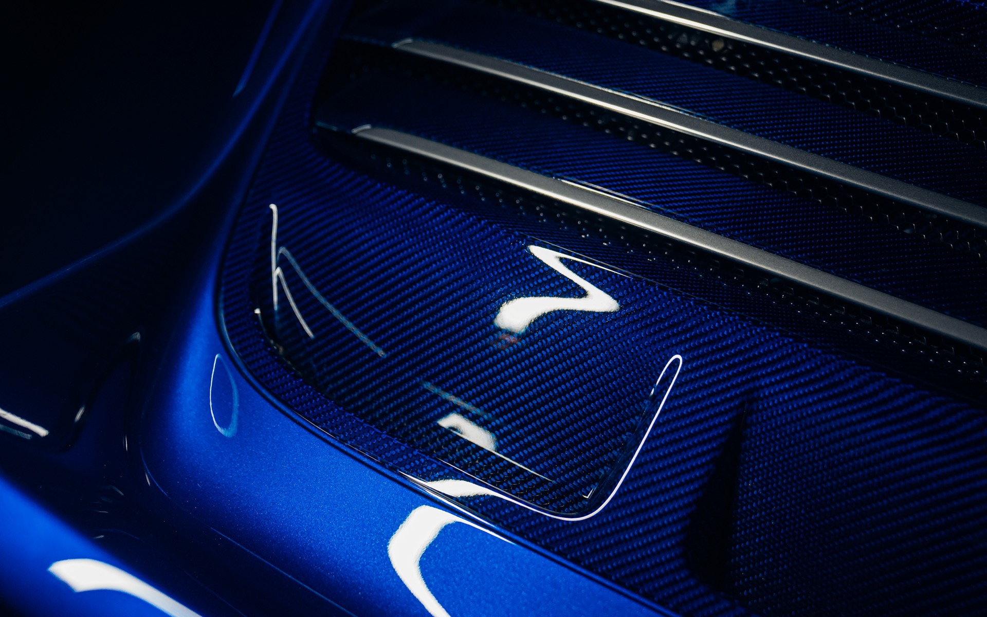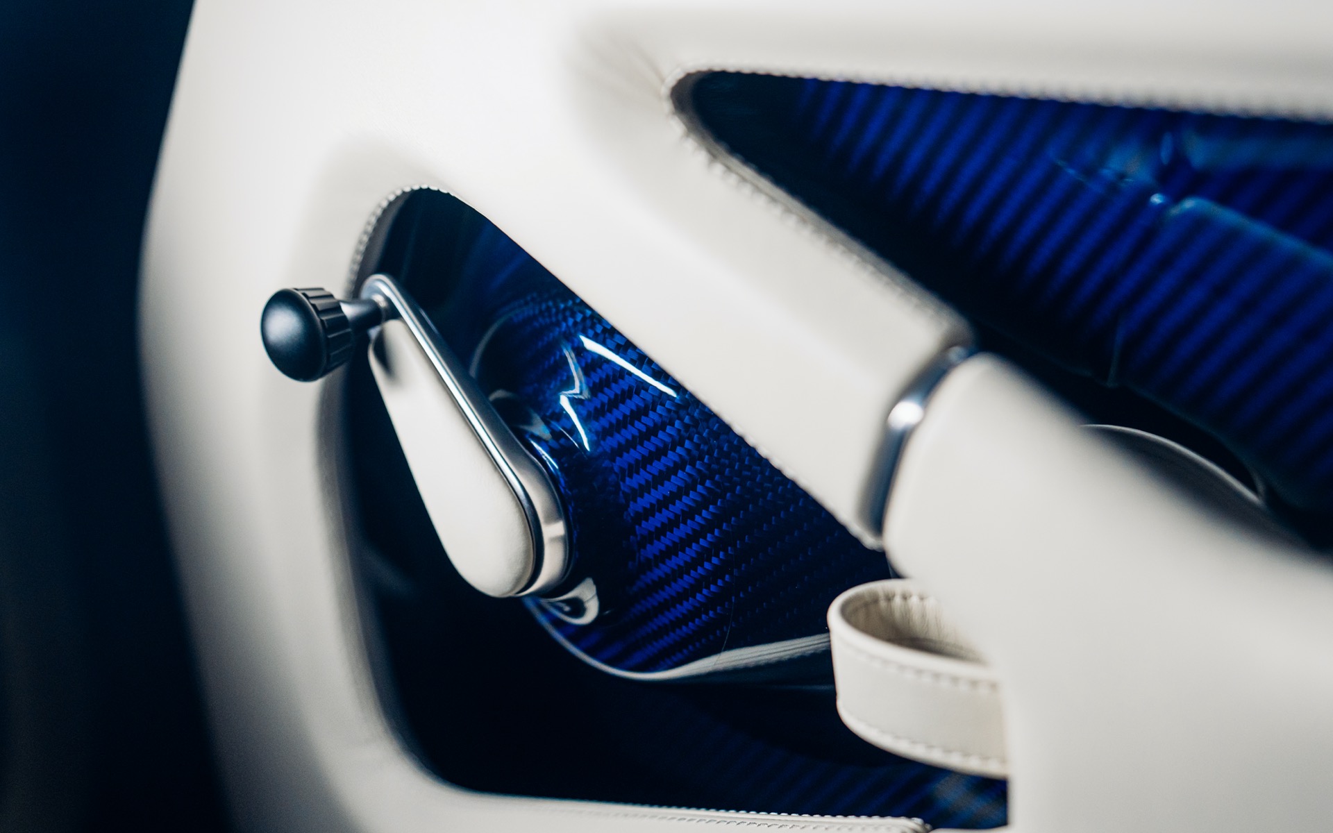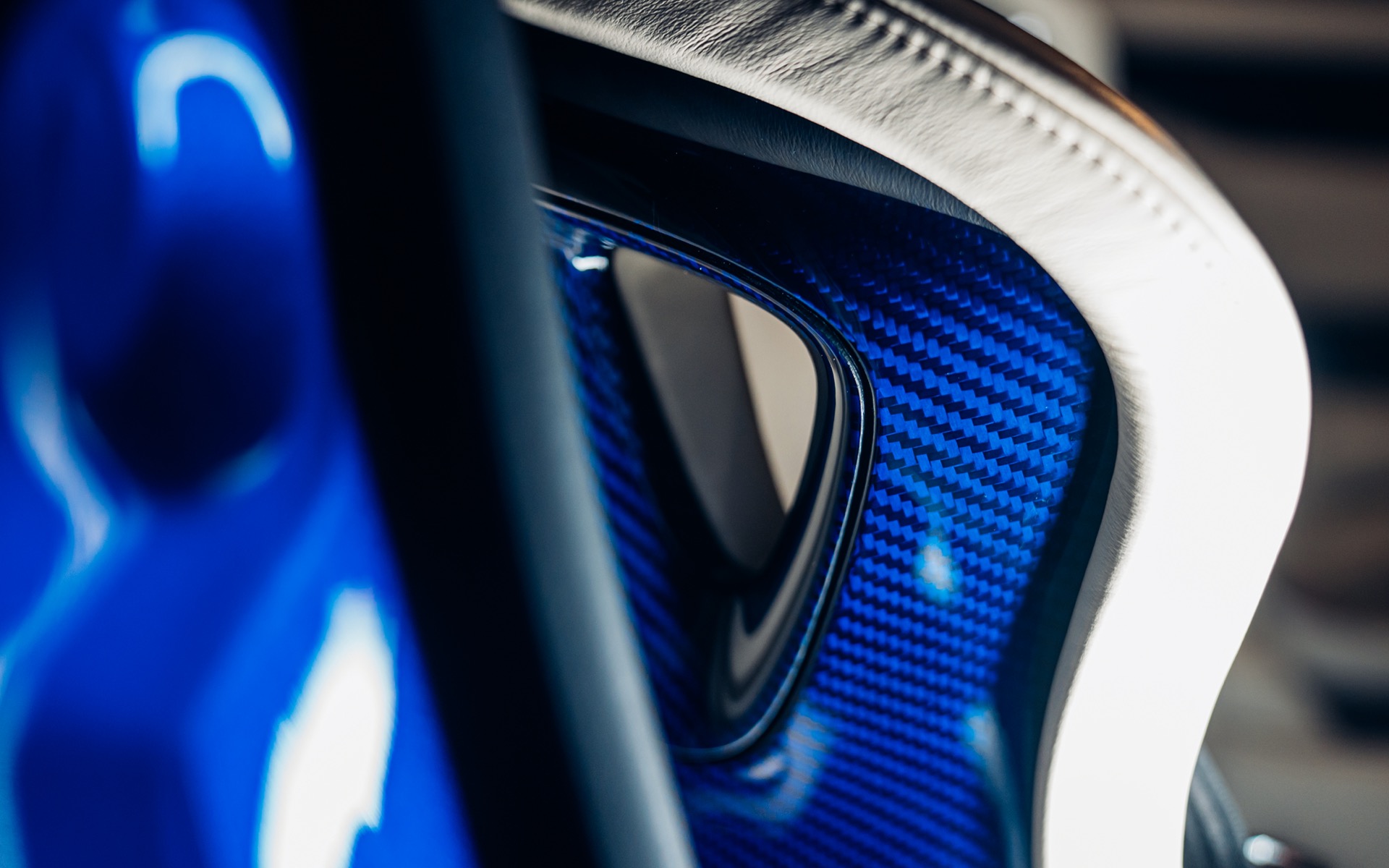 This particular Oppenheimer Commission was inspired by the legendary Oppenheimer Blue diamond. The Mercedes-Benz Brilliant Blue Metallic exterior is subtly contrasted by visible navy-tinted carbon fibre across the bodywork. Exposed carbon detailing in the Porsche script, front and rear trim lines, and smoked taillights add further sophistication. The brightwork is finished in polished titanium, enhancing the car’s understated elegance.