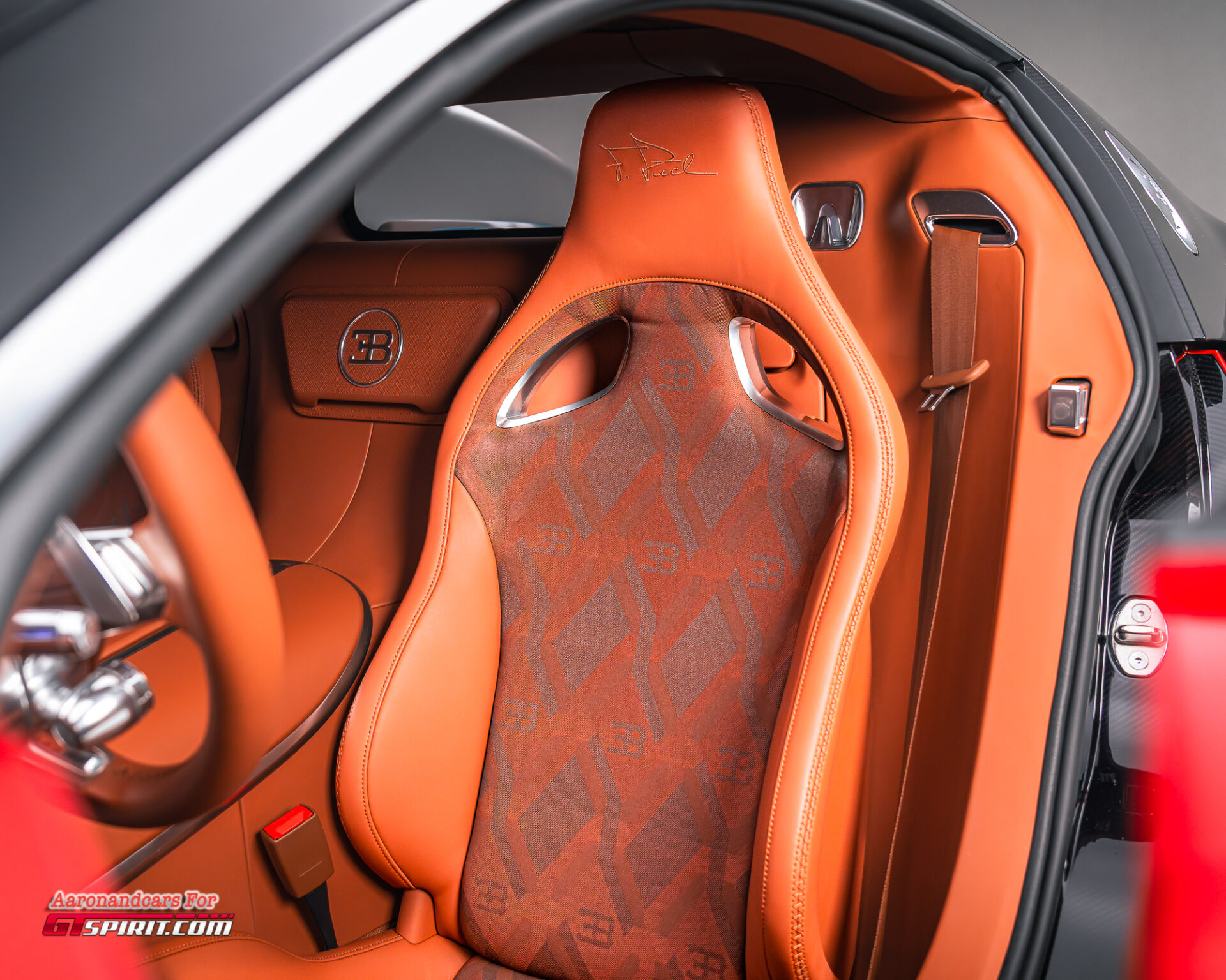 At the heart of it all sits a bespoke Audemars Piguet Royal Oak Tourbillon, integrated directly into the dashboard within an engine-turned aluminum island inspired by Ettore Bugatti’s straight-eight cylinder heads. Mounted in a self-winding gondola, the mechanical timepiece quietly rotates to maintain power—autonomous and gloriously unnecessary. By itself, the watch carries a value exceeding that of many new Ferraris or Bentleys, an almost incidental detail that perfectly captures the mindset behind this project. That sense of continuity runs deeper still: the owner of the F.K.P. Hommage also owns one of the very first 2005 Bugatti Veyrons, finished in the exact same red-and-black color scheme, turning this one-off into a modern counterpart rather than a replacement. It exists not to impress passengers, but because the owner wanted it—and because Bugatti could make it happen.