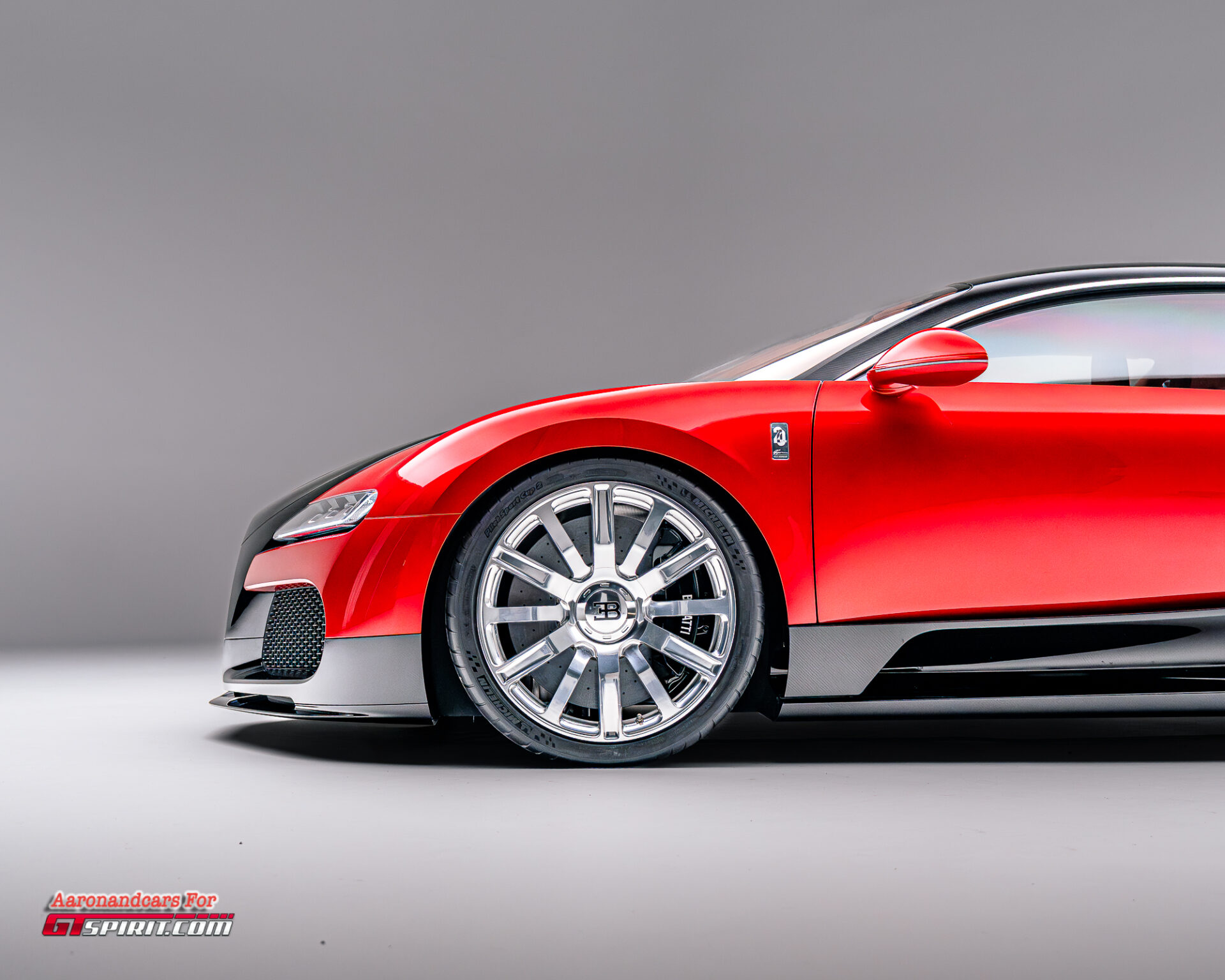 Accordingly, this Veyron homage breathes through larger air intakes, benefits from vastly evolved aerodynamics, and sits on subtly upsized wheels wearing modern Michelin rubber. The details sharpen the stance and capability without disturbing the original car’s character. Even the paint tells a story of progress: what appears to be red metal is actually a silver aluminum base beneath a translucent red-tinted clear coat, while the exposed carbon fiber is not painted black but subtly tinted within the clear coat itself. As Heyl jokingly puts it, it’s “like wearing mink on the inside”—understated, and only for those who know where to look.