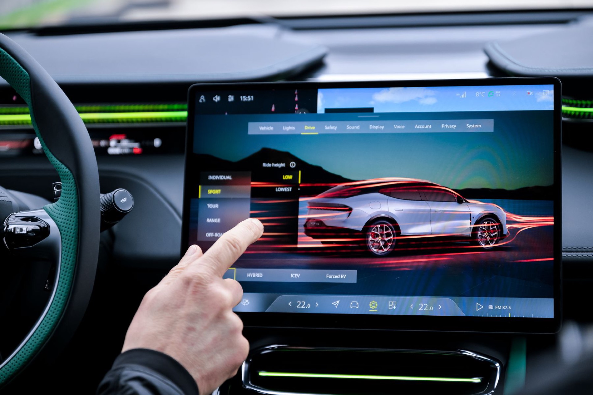 “The Eletre X is designed for long-distance driving. It’s sporty, but not quite as focused as the fully electric version,” explains engineer Chong Yok Meng with a smile. “The Eletre X is an SUV on steroids.” Energy consumption is rated at 21.6 kWh per 100 kilometres alongside 6.1 litres of fuel.
