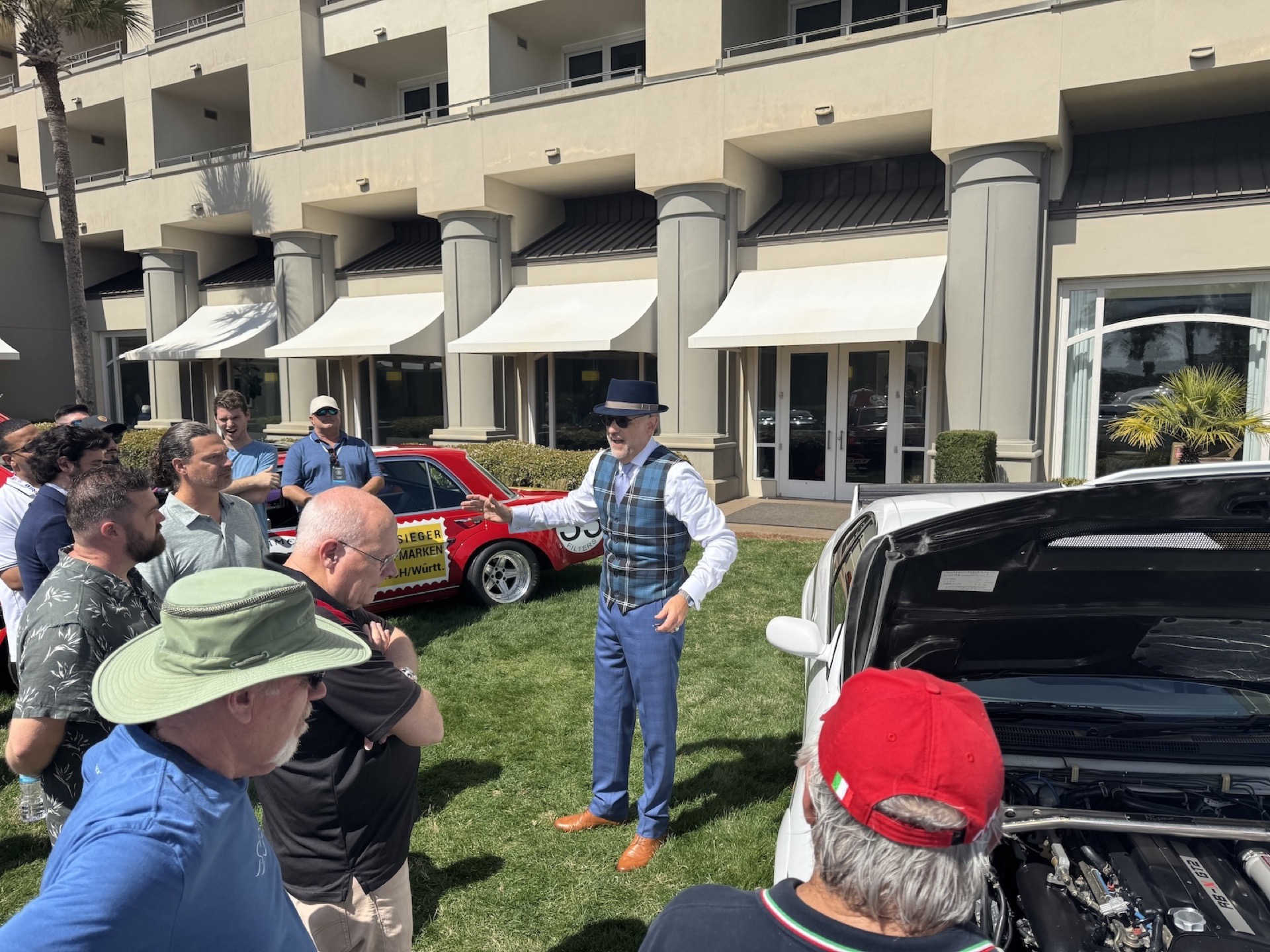 These modern classics appear not only at the Cars & Caffeine gathering on Sunday but also at Radwood and at the many informal meet-ups in parking lots and petrol stations stretching towards Jacksonville. There is no $180 entrance fee there and the air does not carry the sweet scent of cigars that hangs over the concours grounds. Visitors wear shorts and colourful polo shirts, while judges and long-time concours enthusiasts often appear in dark double-breasted jackets, light pleated chinos and straw hats. It is the unofficial uniform of Amelia Island.